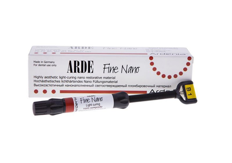 - Благодаря использованию последних достижений нанотехнологий Arde Fine Nano отличается непревзойденной эстетикой, естественной флуоресценцией и целым рядом улучшенных характеристик. Он идеален в обработке и обладает прекрасными свойствами. Цветовая гамма материала позволяет выполнять как реставрации с высокими требованиями к эстетике, так и стандартные по всем показателям. Arde Fine Nano универсально применим для полостей всех классов и всех типов реставраций (прямых и непрямых). Высоконаполненность Arde Fine Nano (83% от веса) придает ему необычайно высокую поверхностную прочность и прочность на изгиб, а также краевую стабильность и ярко выраженную абразивную устойчивость. Не липкая консистенция, идеальная для моделирования.