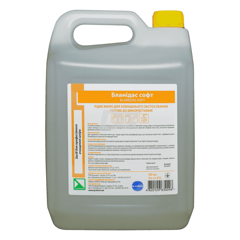 ОПИСАНИЕ Бланидас софт 5 л - готовое моющее средство для гигиенического мытья рук