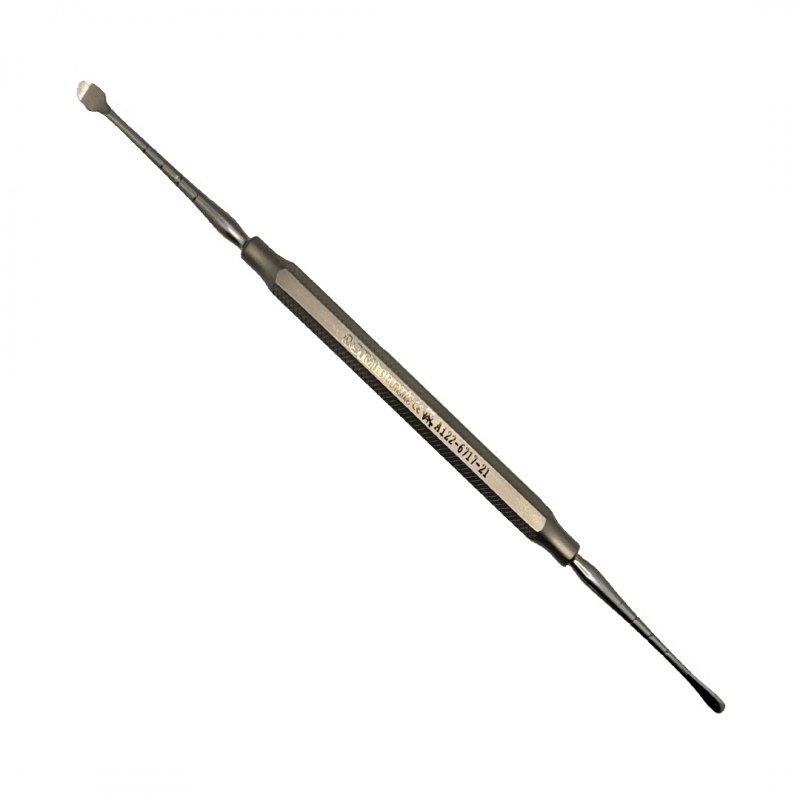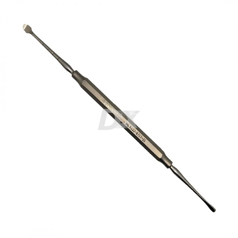 • Элеватор носовой перегородки — это хирургический инструмент, используемый для отделения слизистой оболочки от хряща и кости во время операций на носовой перегородке, таких как септопластика или ринопластика. Он предназначен для аккуратного выполнения манипуляций, минимизируя травматизацию тканей и позволяя хирургу работать с высокой точностью.