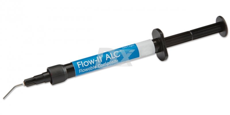 - Flow-It ALC – жидкотекучий композит, ускоренная полимеризация которого в течение 3-10 секунд обеспечивается усовершенствованной формулой фотоинициатора, при этом сохраняется способность материала компенсировать полимеризационную усадку за счет тиксотропности. Модуль Юнга 4.1 ГПа отражает высокую эластичность материала после полимеризации и его способность амортизировать нагрузки.