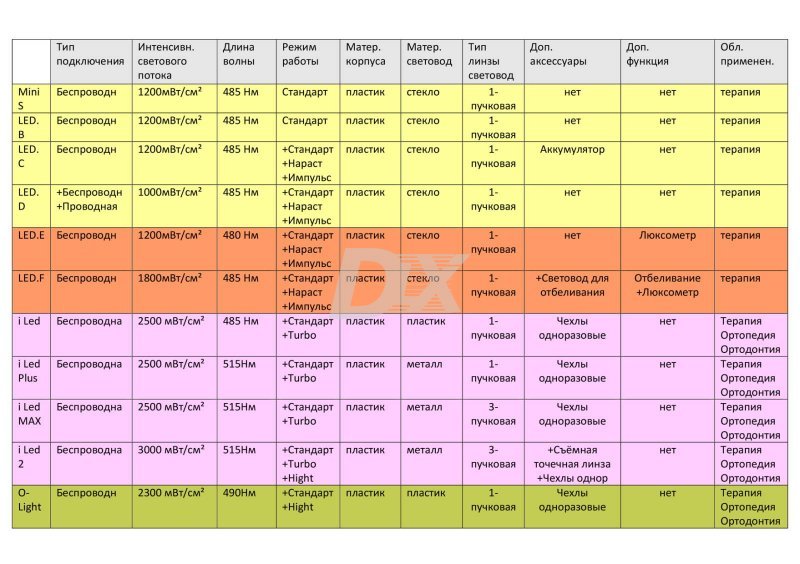 полимеризации таких светочувствительных материалов, как: композитные пломбировочные материалы; герметики; адгезивы; силеры; базы и т. д.