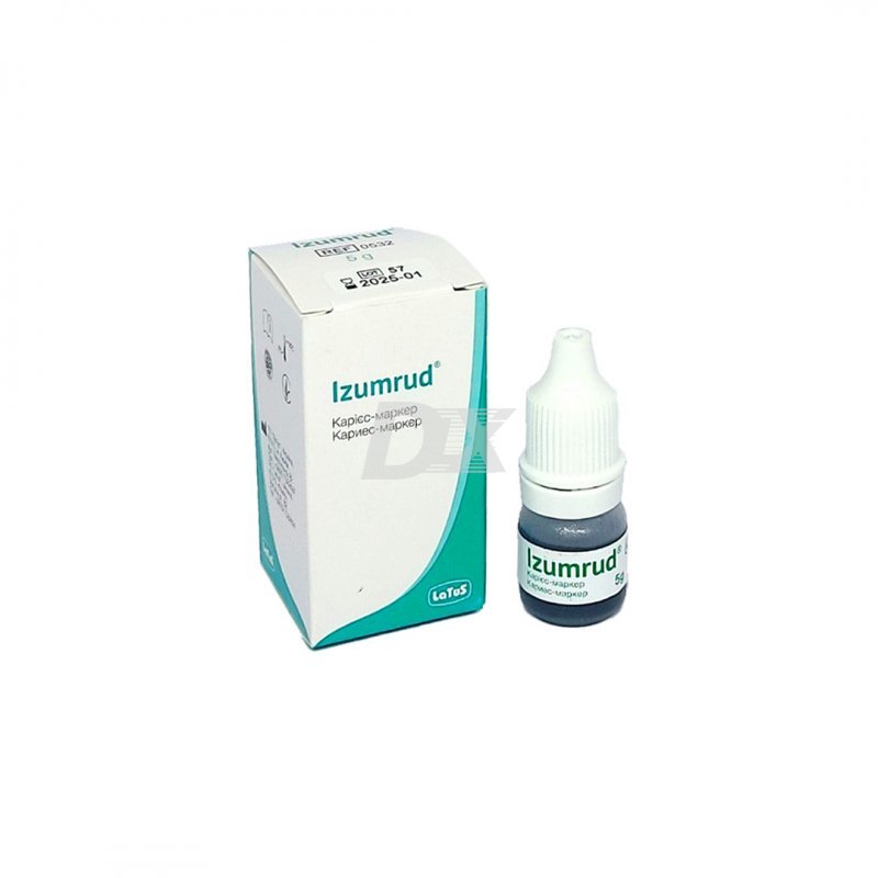 • Izumrud применяется в терапевтической стоматологии как индикатор для выявления пораженного кариесом и деминерализованного слоя дентина.