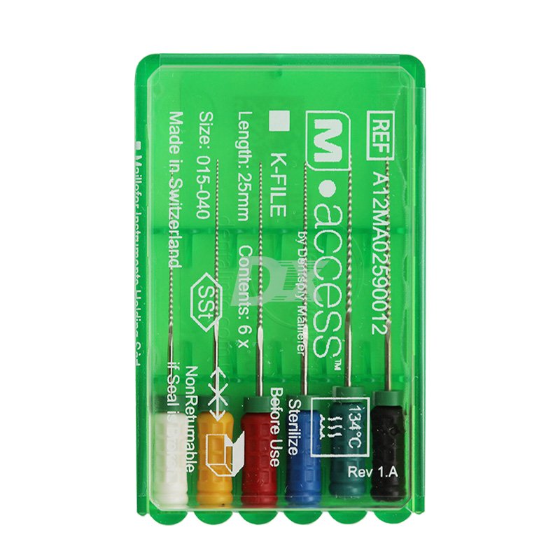 • Инструменты m.access из нержавеющей стали имеют эргономичный дизайн; пластмассовые рукоятки имеют цветовую кодировку по ISO, в упаковке 6 размеров инструментов. Ручные инструменты m.access удобны и просты в использовании. Силиконовый ограничитель длины даёт контроль клиницисту, что в дальнейшем помогает правильно направлять верхушку инструмента в корневом канале. Это характеристика увеличивает безопасность и эффективность работы инструмента в процессе лечения