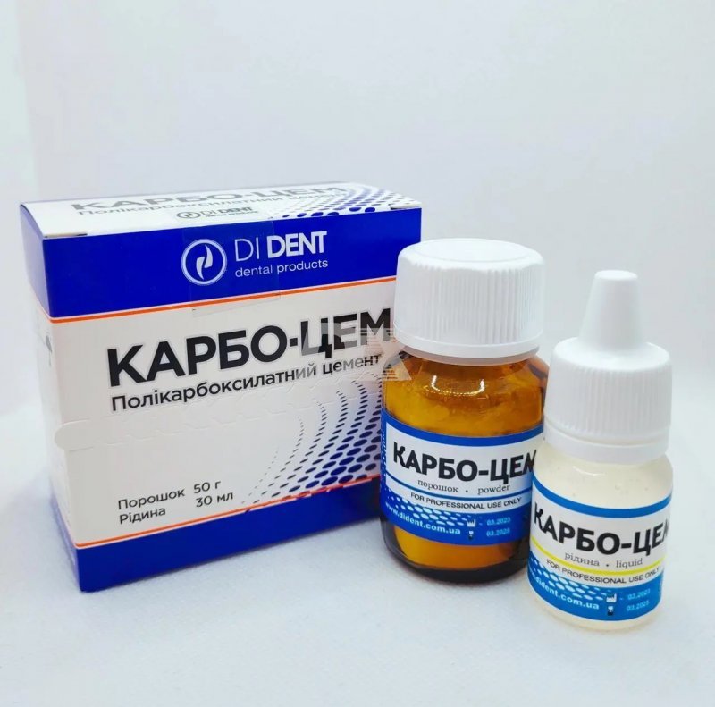 ОПИСАНИЕ Карбоцем — цинк-поликарбоксилатный стоматологический двухкомпонентный цемент в форме порошка и жидкости.
