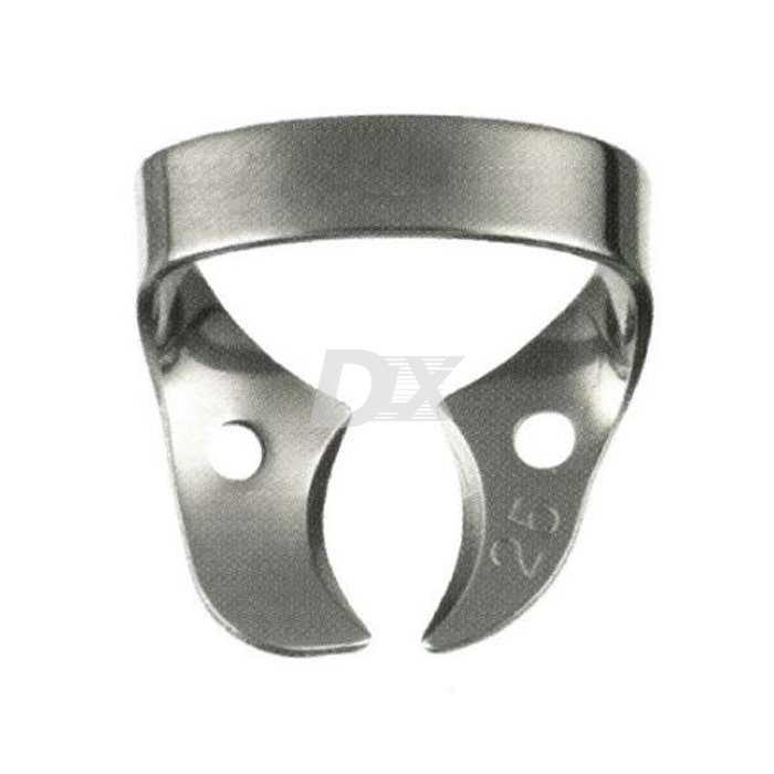 • Кламп для моляров верхней и нижней челюсти. Крылья отсутствуют, щечки асимметричные. Рекомендуется при изоляции протяженных участков как якорный кламп. Асимметрия щечек клампа