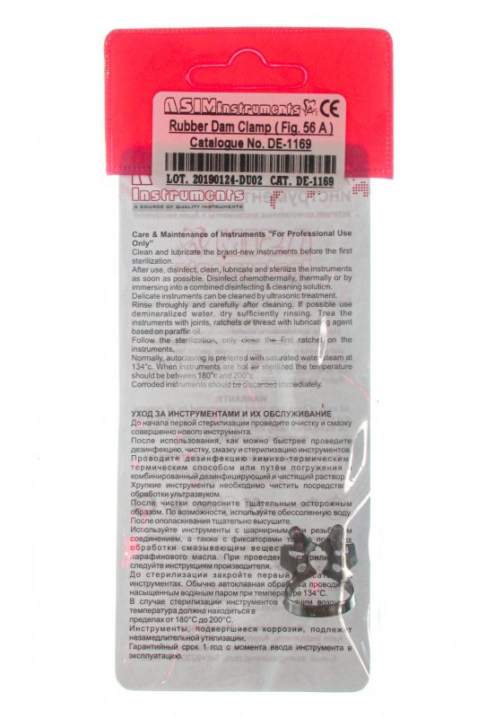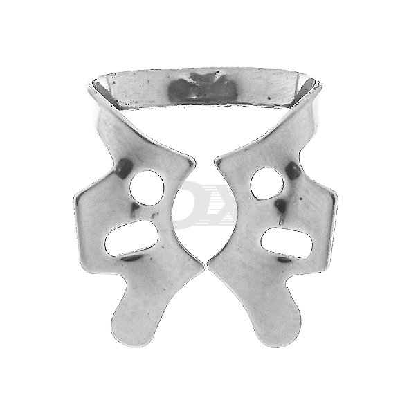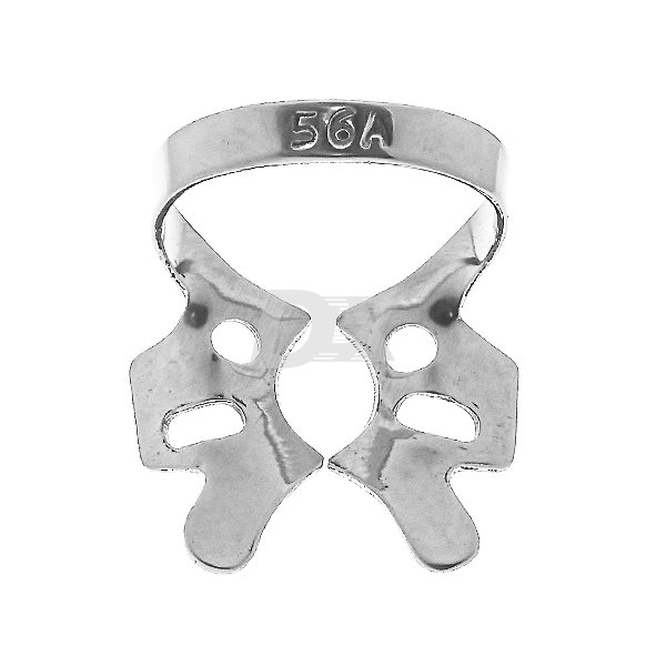 • Кламп №56A для моляров верхней и нижней челюсти. Имеет симметричные щечки большого радиуса для зубов с крупной коронковой частью. На боковых крыльях имеются дополнительные овальные отверстия, облегчающие снятие края перфорации латексного платка при установке.