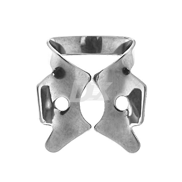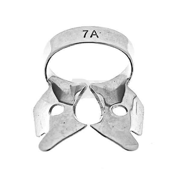 • Кламп №7А кламп для очень больших моляров верхней и нижней челюсти. По сравнению с клампом №7, обладает большей дугой и радиусом щечек. При аккуратной установке, давление клампа на мягкие ткани и соответственно, дискомфорт пациента минимальны.