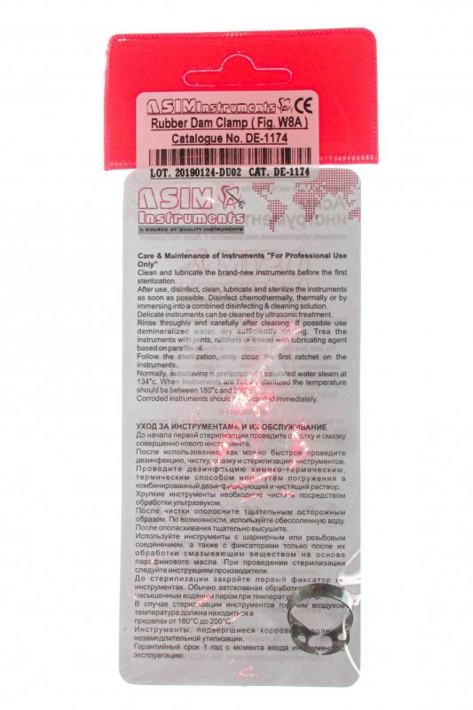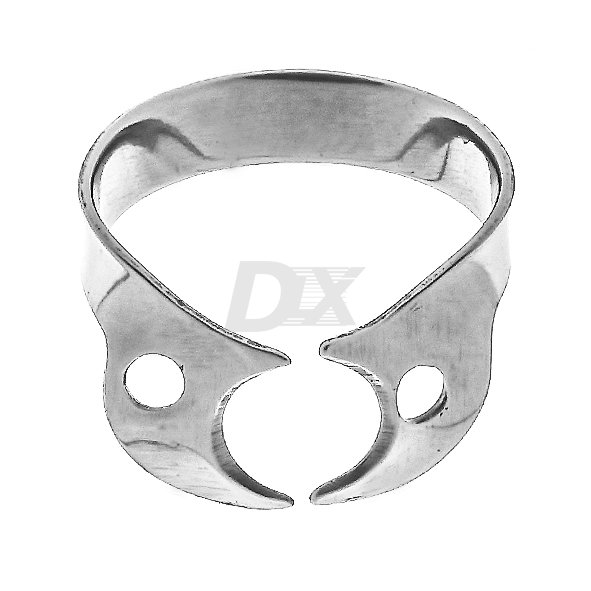 • Кламп №8А для моляров верхней и нижней челюсти с очень разрушенной, практически отсутствующей, коронковой частью. Удлиненные боковые щечки и выступающие углы позволяют надежно фиксировать его на корне моляра на уровне десневой борозды и ниже.