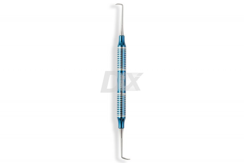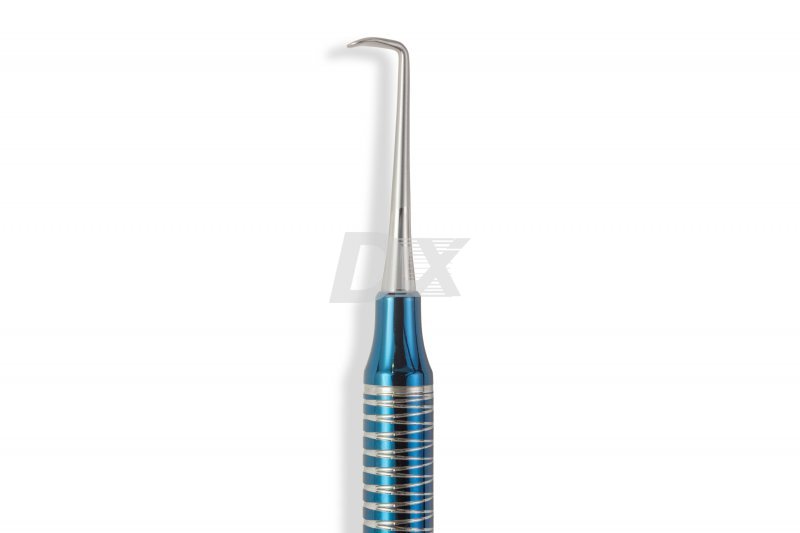 • При правильном применении, зоноспецифичность кюрета для отслоения слизистой минимизирует риск повреждения, так как рабочая часть всегда направлена ​​к поверхности кости, а слизистая отслоившись от кости, ложится на гладкую заднюю поверхность инструмента.