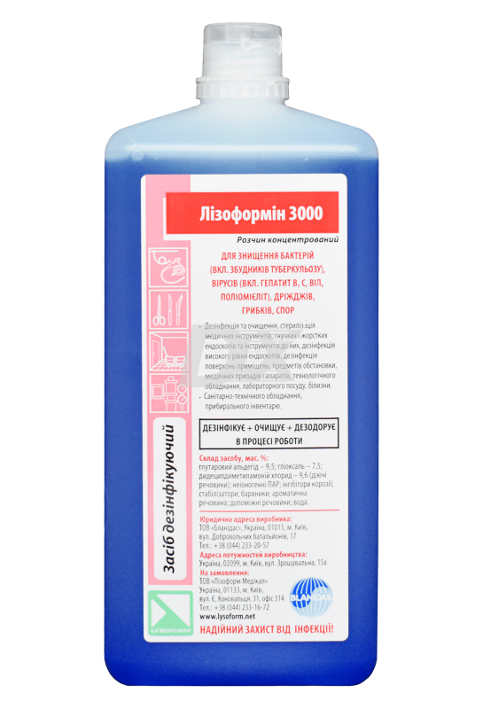ОПИСАНИЕ Лизоформин 3000 - универсальное комбинированное альдегидное средство для текущей, заключительной, профилактической дезинфекции всех типов поверхностей