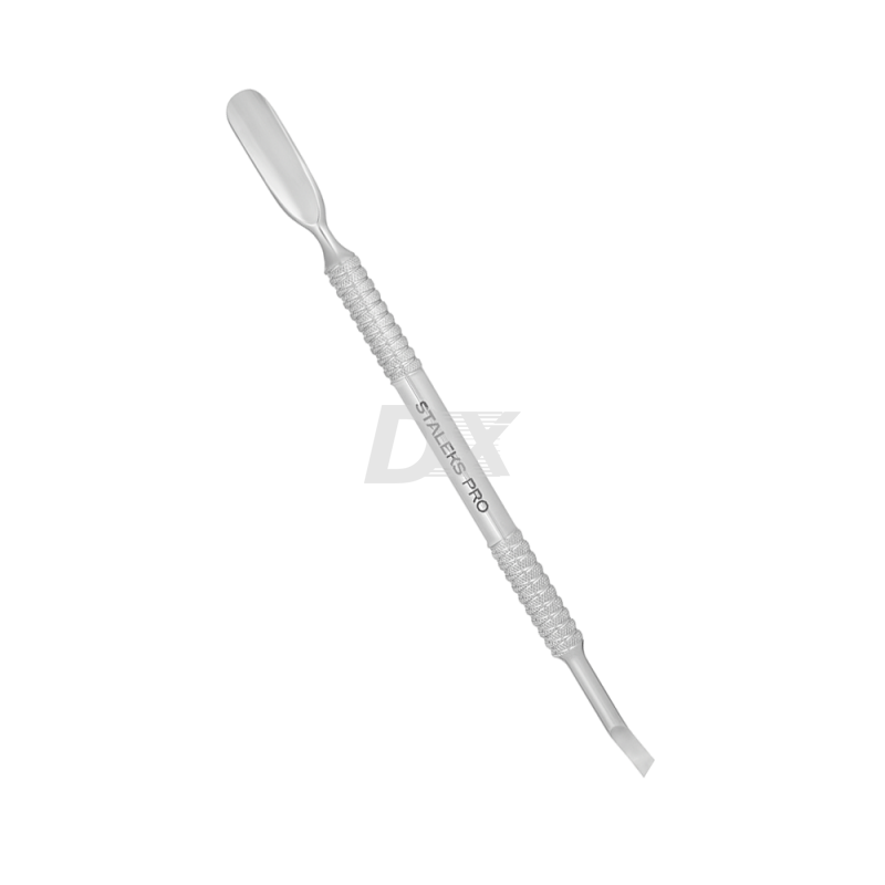 - Имея в арсенале набор профессиональных маникюрных принадлежностей, ухаживать за ногтевой зоной можно легко и быстро. Компания «Сталекс» рекомендует для специалистов ногтевого сервиса, которые ценят свое время и отвечают за качество предоставляемых услуг, маникюрную лопатку STALEKS PRO EXPERT 30 TYPE 4.2 PE-30/4.2 скругленный пушер + отогнутая лопасть.