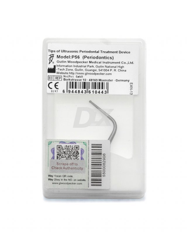 P56– работает в режиме «Р» перио, предназначена для ультразвуковой очистки зуба от твердых зубных отложений, непосредственно в придесневой области. Конец насадки имеет скругленную форму (шаровидную) что способствует безболезненному удалению крупных зубных отложений без повреждения мягких тканей в придесневой области.