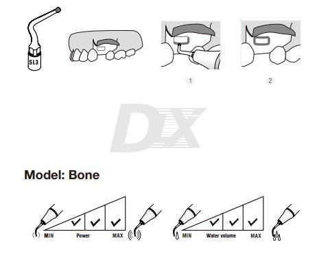 • SL3 – насадка с алмазным напылением (100мкм) для тонкой остеотомии или остеопластики. Для атравматичной остеотомии вблизи мягких тканей и чувствительных участков.
