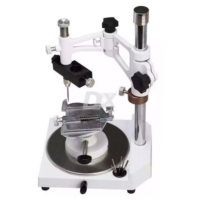- Высоту фиксации инструмента можно изменять в пределах опорной штанги. В комплект параллелометра дополнительно входит специальный держатель для фиксации наконечника-микромотора. Держатель позволяет использовать прибор для вертикальных фрезерных работ не сложного характера.