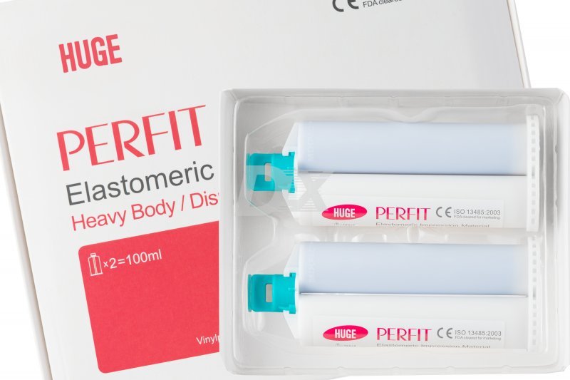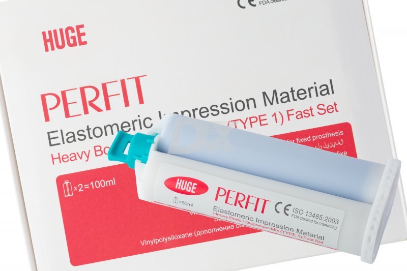 - PERFIT – это силиконовый материал аддитивного отверждения, состоящий из поливинилсилоксана, наполнителя, пигмента, кросс-линкера, платинового катализатора. Хорошая текучесть, пластичность, очень низкий коэффициент усадки, легко извлекается из ротовой полости после оттиска, обладает хорошей химостойкостью. Оттиски, выполненные из этого продукта обладают высокой точностью, хорошим эластичным восстановлением, имеют достаточную прочность на разрыв и высокую стабильность размеров; могут обеспечить точную и надежную основную форму для клинического применения в стоматологических отделениях. Совместимость почти со всеми формовочными материалами. Материал можно надежно дезинфицировать.
