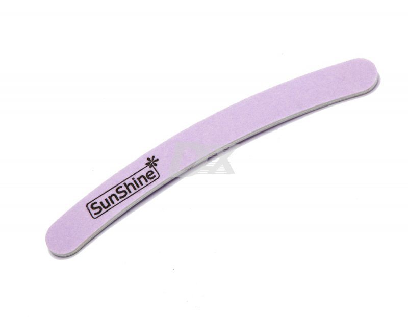 - Пилка для ногтей бумеранг SUNshine сиреневая с абразивностью 150 используется для обработки натуральных ногтей.
