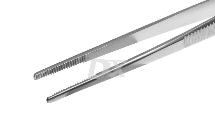 - Насечки, которые расположены поперёк и неглубоко на конце пинцета анатомического, обеспечивают более надёжное удерживание тканей.