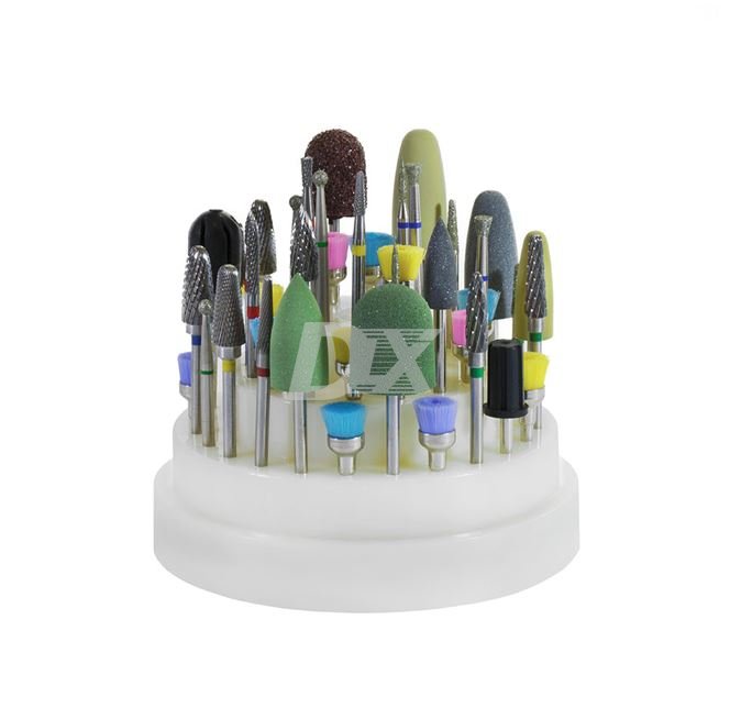 • Подставка предназначена для хранения и дезинфекции алмазных боров и твердосплавных фрез, карборундовых и спечённых головок для прямого наконечника.