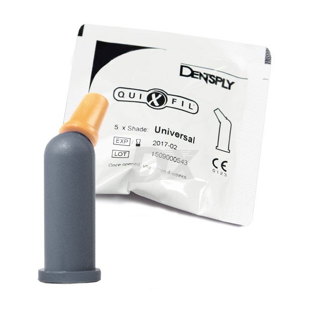 - QuiXfil- реставрационный материал на основе композитной смолы, разработанный специально для использования в жевательной группе зубов. Это позволяет упростить и ускорить методику использования, не уменьшая при этом безопасность и эффективность. В материале QuiXfil используется новая технология наполнителя, обеспечивающая повышенное его содержание. Благодаря этому уменьшены усадка, которая у материала QuiXfil составляет 1.7%, и время полимеризации – 10 секунд для слоя в 4 мм.