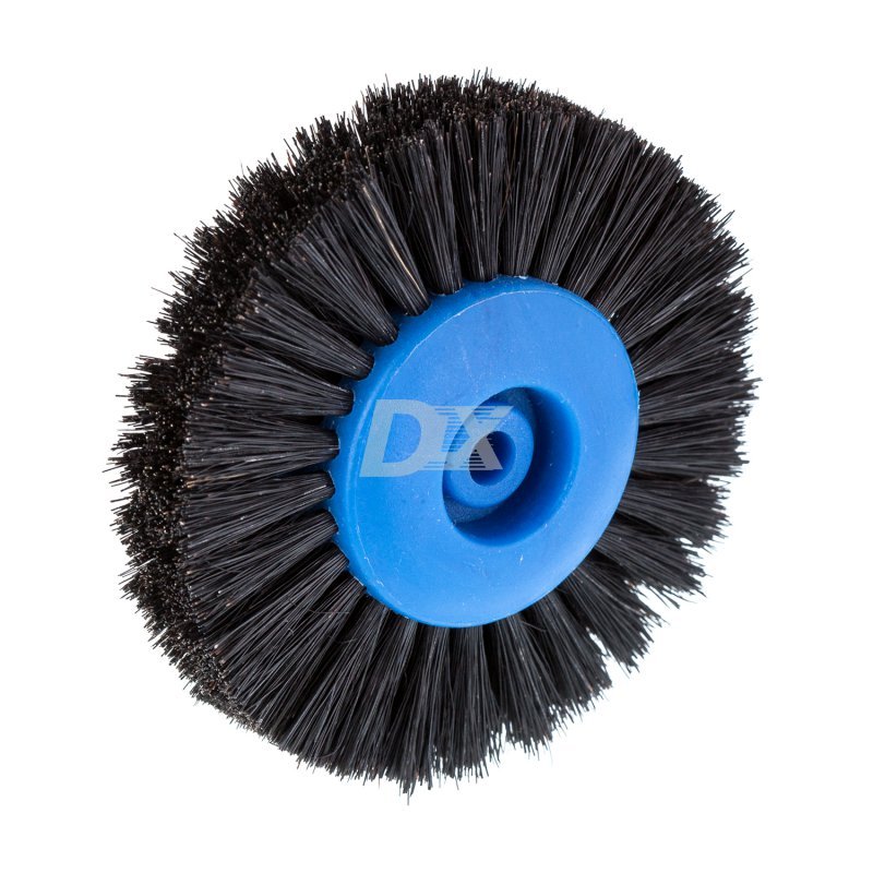 • Круглая, 4-х рядная щетка с пластиковой, широкой сердцевиной для абразивной полировки,  подходит для шлифовки труднодоступных мест зубных протезов.