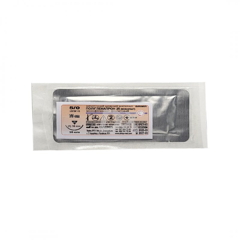 Шовный материал Полиглекапрон (ПГК-25) монофиламентный 75 см, 5/0 фиолетовый