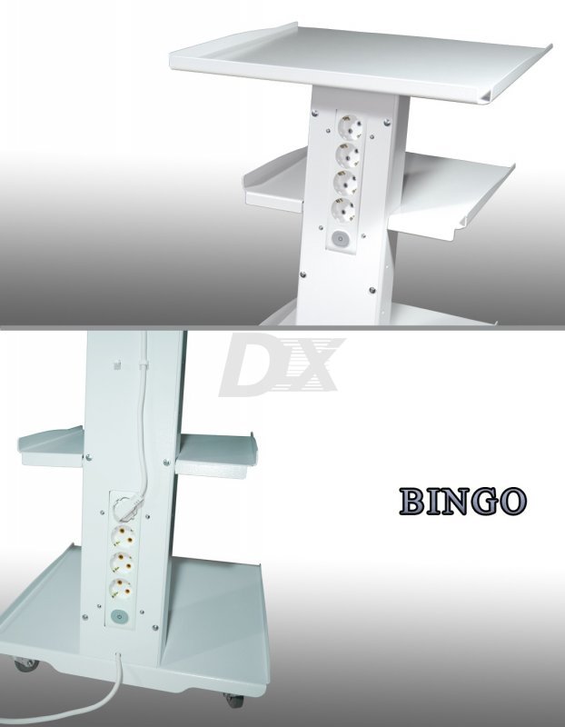 Bingo - высота 85 см. или 101 см. (по вашему выбору) Стол для электроприборов, физиотерапевтических приборов, полностью разборной. В базе: 3 полки, удлинитель 4х5 метров, ролики с тормозом. Доступны дополнительные полки.