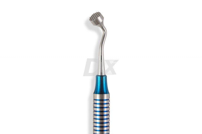 - рабочие поверхности инструмента ориентированы по отношению к ручке под углом 45 градусов, что позволяет использовать костный импактор в труднодоступных участках полости рта.
