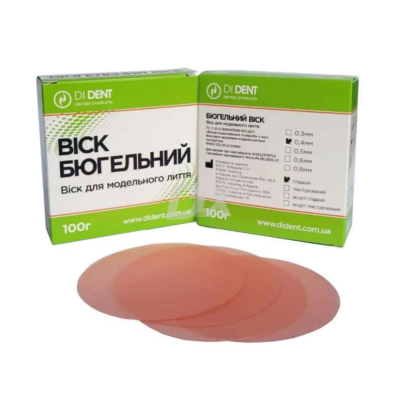 • Воск бюгельный - это воск, который производится в виде дисков разной толщины и текстуры, и используется для изготовления промежуточного пространства каркаса бюгельного протеза.