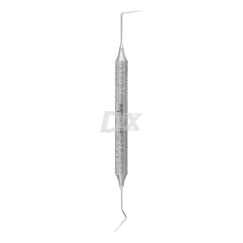 • Эндодонтический зонд применяется для определения и раскрытия небольших устьев корневых каналов при эндоднтических манипуляциях. Также применяется для удаления кальцификации из корневого канала в пределах пульпы. Используется для смещения фрагментированных инструментов в канале для облегчения их извлечения. Рабочая часть зонда очень острая и крепкая. Углы наклона идеально подходят для работы в передних и боковых зубах. Определение направления (коронального угла) корневого канала.