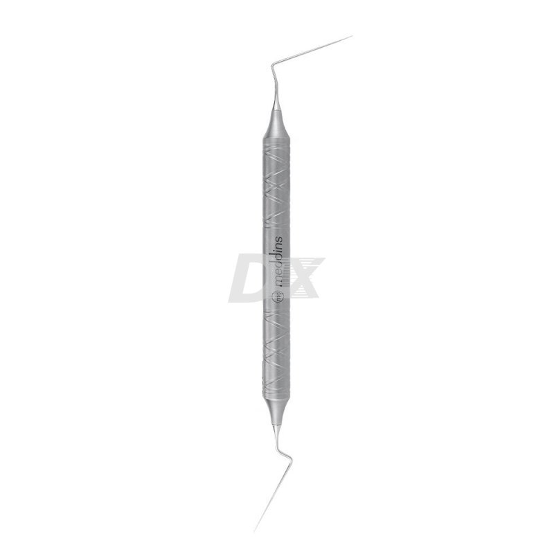 • Эндодонтический зонд применяется для определения и раскрытия небольших устьев корневых каналов при эндоднтических манипуляциях. Также применяется для удаления кальцификации из корневого канала в пределах пульпы. Используется для смещения фрагментированных инструментов в канале для облегчения их извлечения. Рабочая часть зонда очень острая и крепкая. Углы наклона идеально подходят для работы в передних и боковых зубах. Определение направления (коронального угла) корневого канала.
