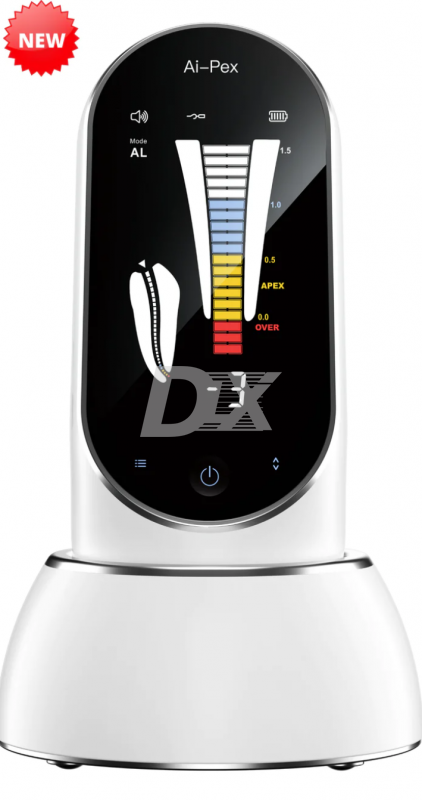 ОПИС Апекслокатор Ai-PEX – це апекслокатор із вбудованим пульптестером та можливістю підключення до ендомотора (812MT, Endo Free, Endo Smart+, E-COM+)