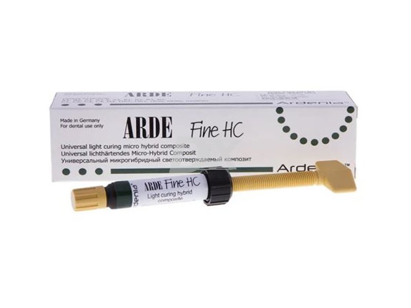 - Arde Fine НС (Арде файн) - світлозатверджувальний, рентгеноконтрастний універсальний композит для реставрації порожнин всіх класів. Удосконалені моделювальні властивості роблять його особливо придатним для багатошарової техніки. Це не тільки гарантує природне та високоестетичне пломбування, а й мінімальне усадження. Має хорошу тиксотропність і стабільність форми. Після полімеризації реставрація має гарне крайове прилягання, добре полірується.