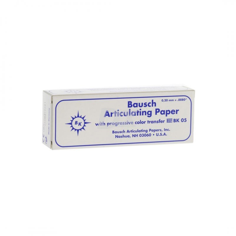 Артикуляційний папір Бауша товщиною 200 мкм з наростаючою інтенсивністю кольору є єдиним видом паперу, що дозволяє уявити жувальну силу різної інтенсивності у вигляді кольорових відображень з відтінками, залежними від величини навантаження:
