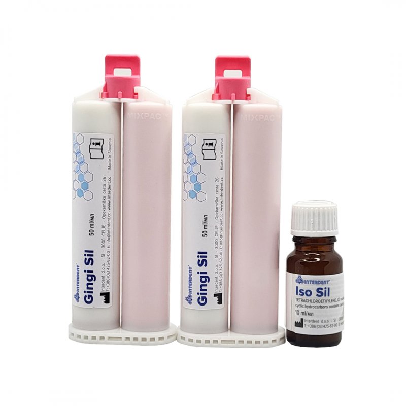 Gingi Sil є поліаддитивним силіконом для виготовлення ясенних масок. Підходить для використання обома методами: