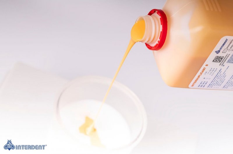 INTERDUPLICAST – це двокомпонентний силікон на адитивній основі з низькою в'язкістю (А-силікон), призначений для виготовлення дублікатів моделей у зуботехнічних лабораторіях.