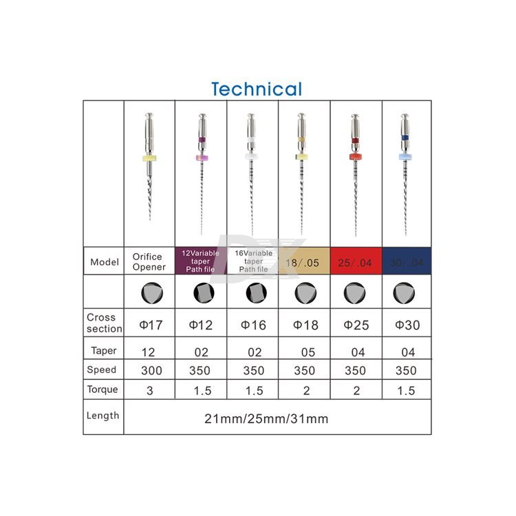 - Висока пластичність файлів в поєднанні з незначною пружністю і вдалим дизайном мінімізують ризик перфорації і освіти уступів.