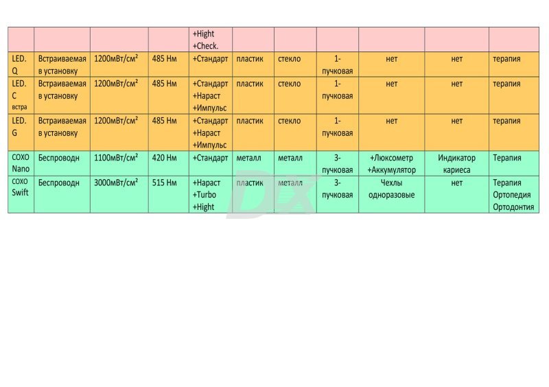 - полімеризація таких світлочутливих матеріалів, як: композитні пломбувальні матеріали; герметики; адгезиви; силери; бази тощо;