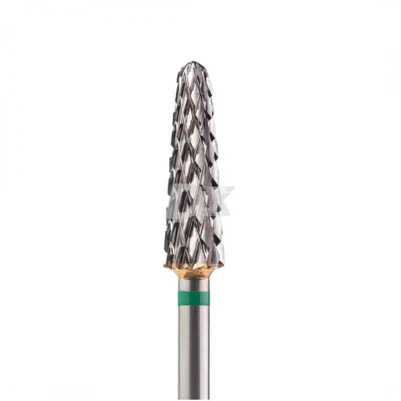 - Конструкція різальних граней забезпечує легке врізання фрези в метал. Завдяки цьому фрези можуть застосовуватися для лікарської корекції суцільнолитих та металокерамічних протезів в умовах клініки з використанням мікромотора стоматологічної установки.