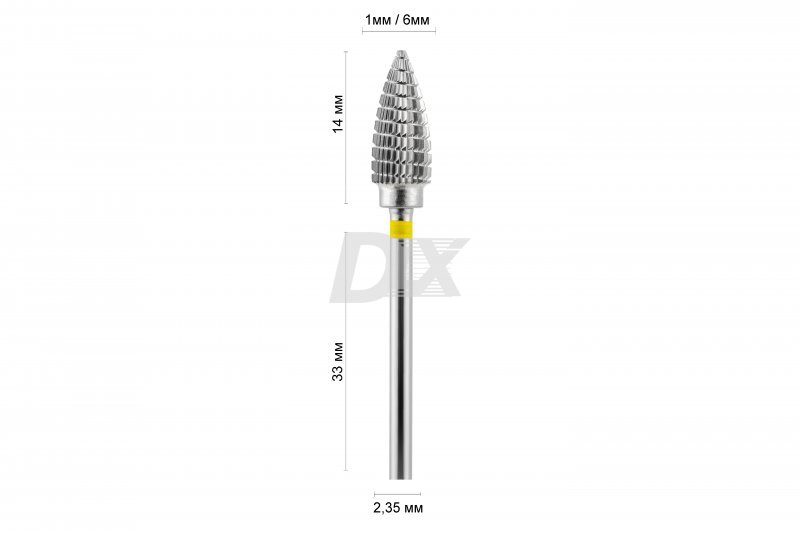 - Конструкція різальних граней забезпечує легке врізання фрези в метал. Завдяки цьому фрези можуть застосовуватися для лікарської корекції суцільнолитих та металокерамічних протезів в умовах клініки з використанням мікромотора стоматологічної установки.