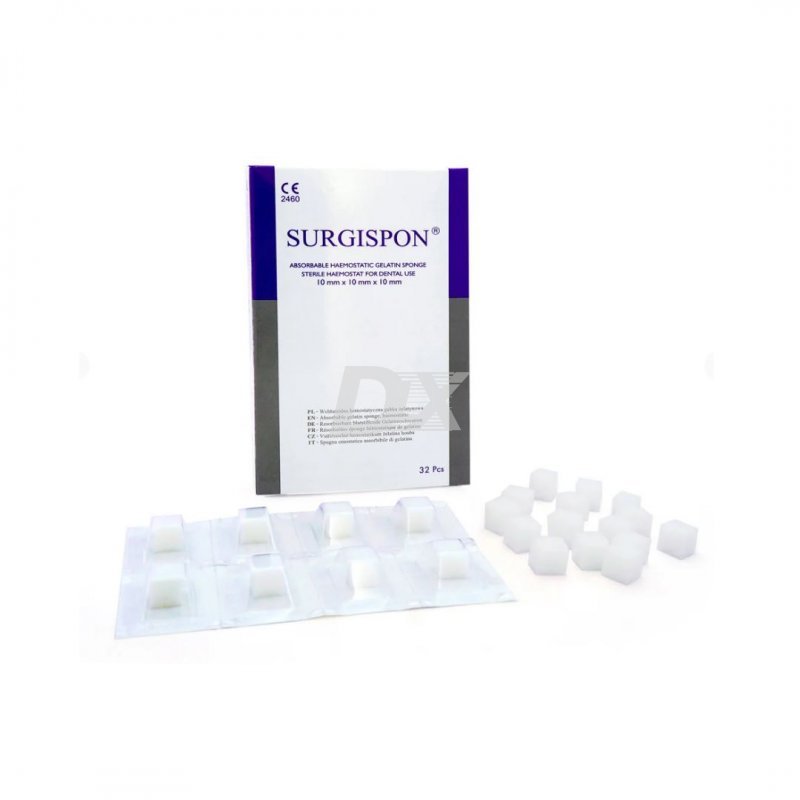 - SURGISPON - стерильна гемостатична губка, що розсмоктується. Призначена для екстреної зупинки кровотеч у процесі різних операцій при видаленні зубів; при травмах, носових, гемороїдальних, кровотечах.