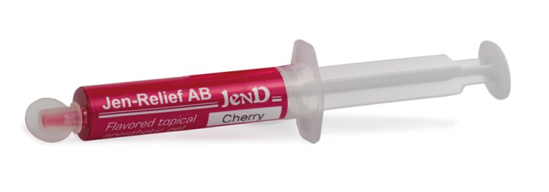 - Jen-Relief AB застосовується для будь-яких стоматологічних процедур, під час яких необхідна місцева анестезія. Гель наноситься на слизову оболонку м'яких тканин, безпосередньо на те місце, де буде проводиться ін'єкція. Матеріал має низьку токсичність, не викликає алергічних реакцій та хімічного опіку слизової оболонки. Легко наноситься на важкодоступні місця. Jen-Relief AB економний, легкий і простий у застосуванні, має приємний смак. Має антибактеріальну дію.