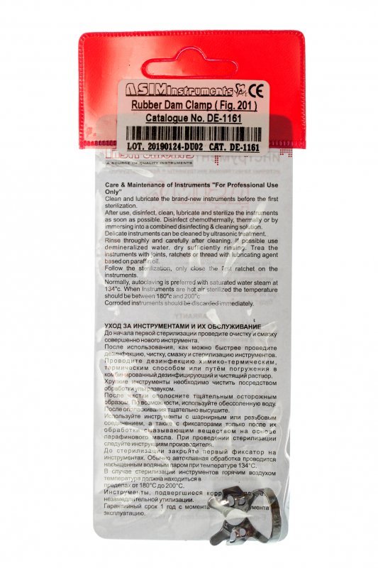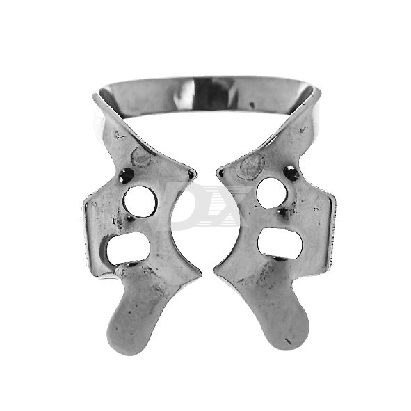 • кламп для молярів верхньої та нижньої щелепи. Щічки симетричні. Відрізняється від клампа №200 наявністю воронкоподібних щічок, вигнутих в апікальному напрямку для кращої фіксації. На бічних крилах є додаткові овальні отвори, що полегшують зняття краю перфорації латексної хустки під час установки.