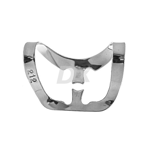 • кламп «метелик» з двома дугами для різців, іклів та премолярів верхньої та нижньої щелеп. Щічки одного розміру, дещо меншого діаметру, на відміну від клампа №9, крила для фіксації клампа в перфорації латексного платка відсутні.