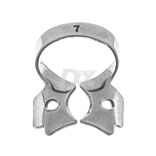 • кламп для молярів верхньої та нижньої щелепи. Особливість клампа – пласкі бічні щічки. Один з найменш агресивних клампів, може застосовуватися при реставрації I-класу за Блеком, якщо вона проводиться на фісурному карієсі.