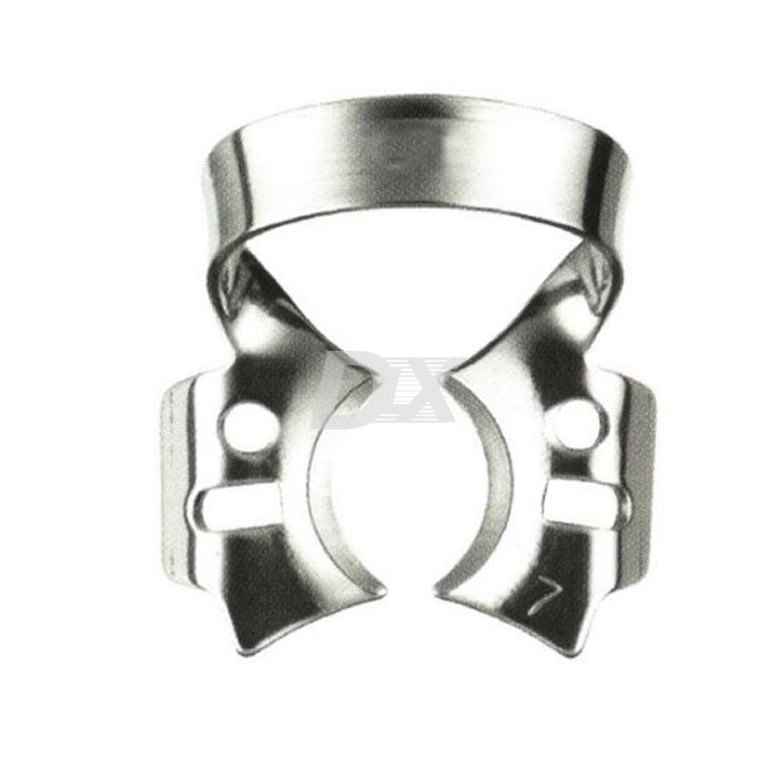 • кламп для молярів верхньої та нижньої щелепи. Особливість клампа – пласкі бічні щічки. Один з найменш агресивних клампів, може застосовуватися при реставрації I-класу за Блеком, якщо вона проводиться на фісурному карієсі.