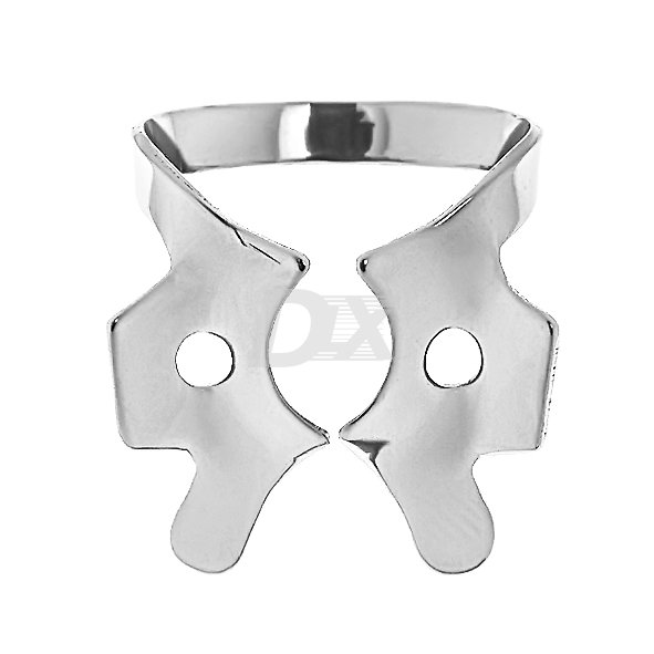 • кламп для молярів верхньої та нижньої щелепи з вираженим воронкоподібним вигином щічок. Застосовується при сильному руйнуванні коронкової частини й препаруванні тканин зуба в пришийковій області.
