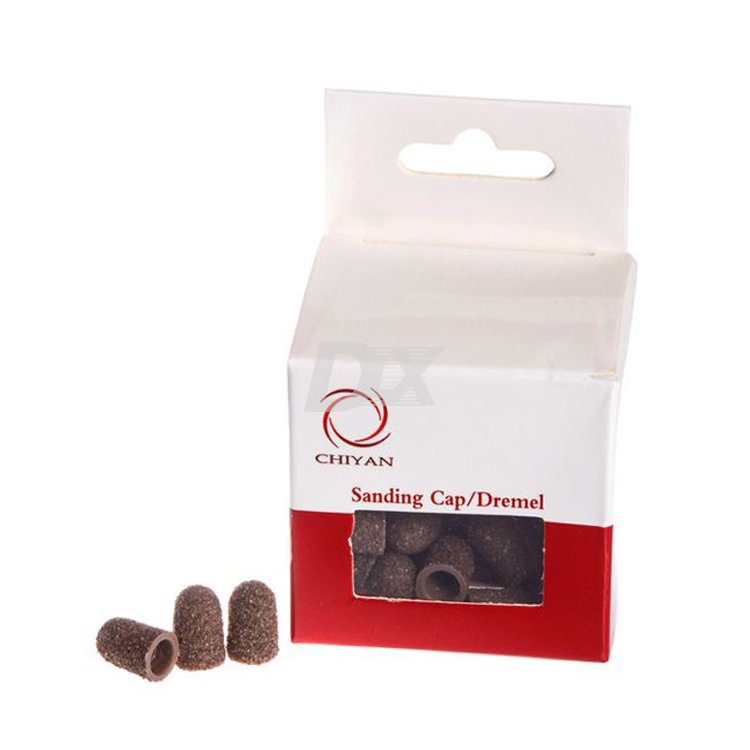 - Шліфувальні ковпачки застосовуються в апаратних процедурах догляду за шкірою у районі ступень й навколонігтьової зони. З їх допомогою можна якісно та досить швидко видалити натоптиші, мозольні утворення і різні ороговілості. Призначені для одноразового застосування, тому дозволяють надавати процесу апаратного догляду високу ступінь гігієнічності та безпеки.