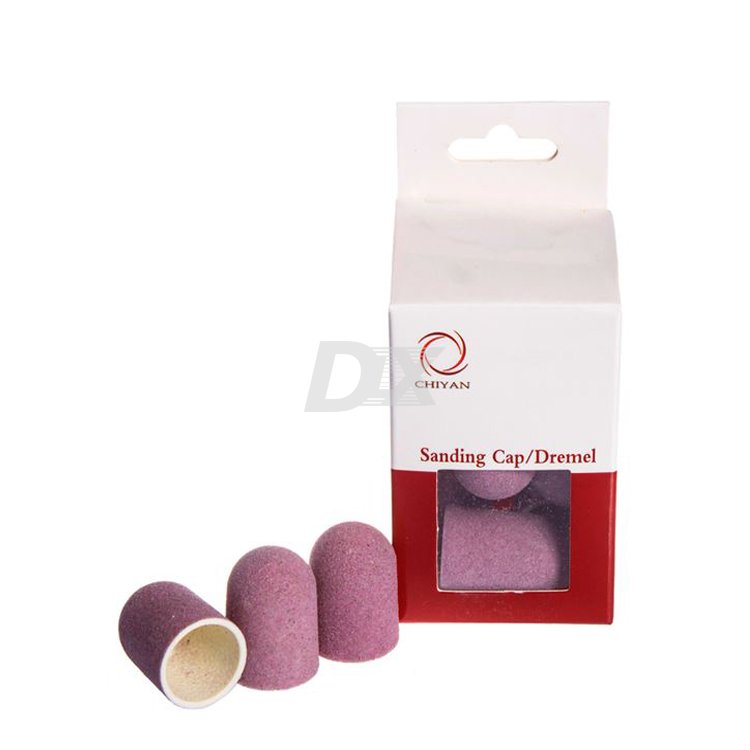 - Шліфувальні ковпачки застосовуються в апаратних процедурах догляду за шкірою у районі ступень й навколонігтьової зони. З їх допомогою можна якісно та досить швидко видалити натоптиші, мозольні утворення і різні ороговілості. Призначені для одноразового застосування, тому дозволяють надавати процесу апаратного догляду високу ступінь гігієнічності та безпеки.