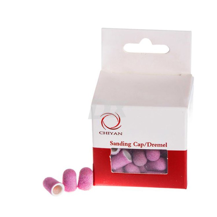 - Шліфувальні ковпачки застосовуються в апаратних процедурах догляду за шкірою у районі ступень й навколонігтьової зони. З їх допомогою можна якісно та досить швидко видалити натоптиші, мозольні утворення і різні ороговілості. Призначені для одноразового застосування, тому дозволяють надавати процесу апаратного догляду високу ступінь гігієнічності та безпеки.