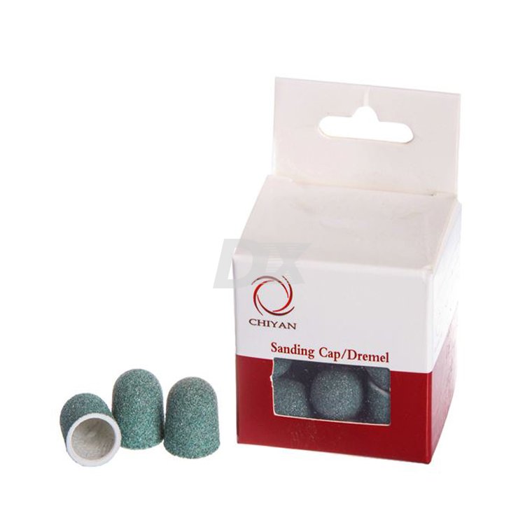 - Шліфувальні ковпачки застосовуються в апаратних процедурах догляду за шкірою у районі ступень й навколонігтьової зони. З їх допомогою можна якісно та досить швидко видалити натоптиші, мозольні утворення і різні ороговілості. Призначені для одноразового застосування, тому дозволяють надавати процесу апаратного догляду високу ступінь гігієнічності та безпеки.